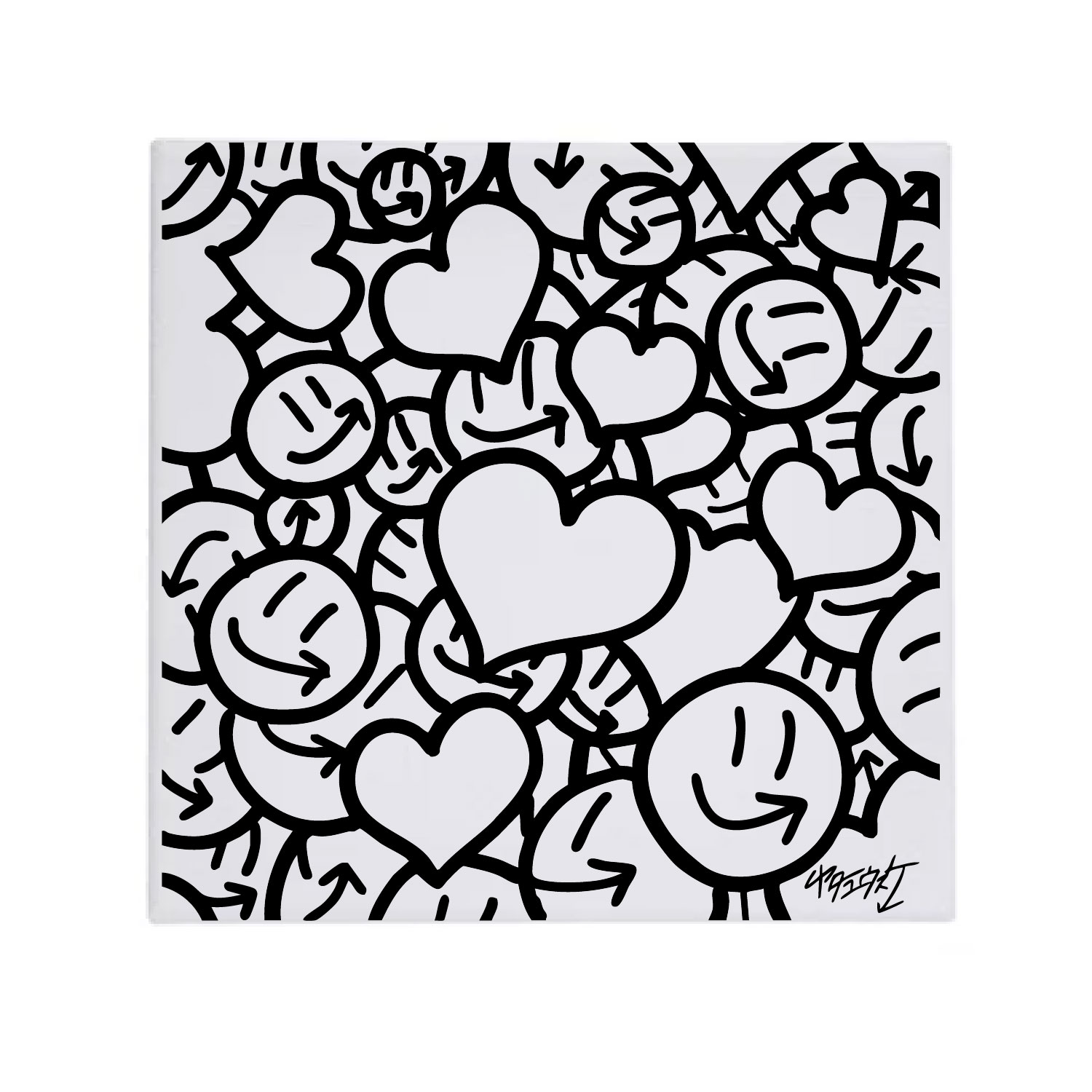 色々な大きさのスマイルとハートをごちゃ混ぜにしました。