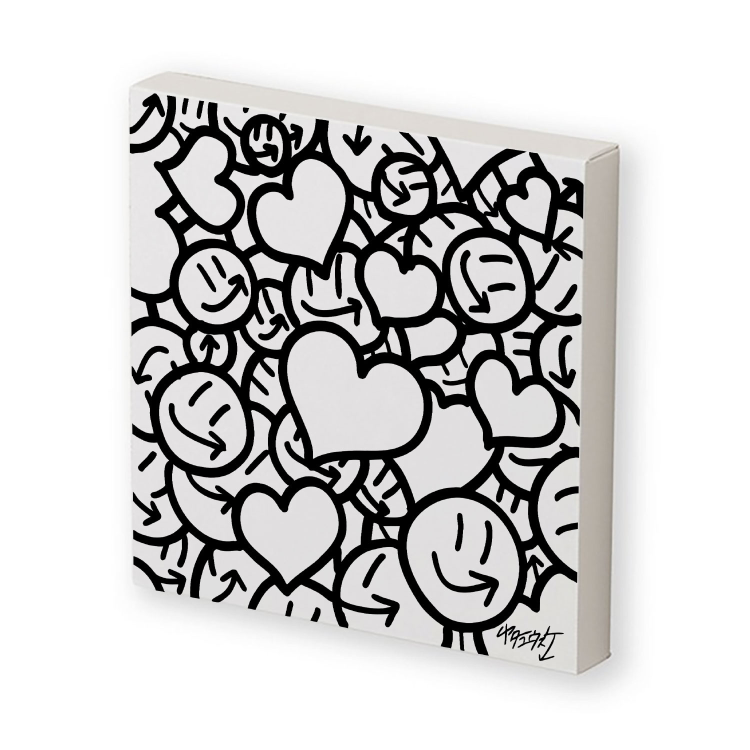 色々な大きさのスマイルとハートをごちゃ混ぜにしました。